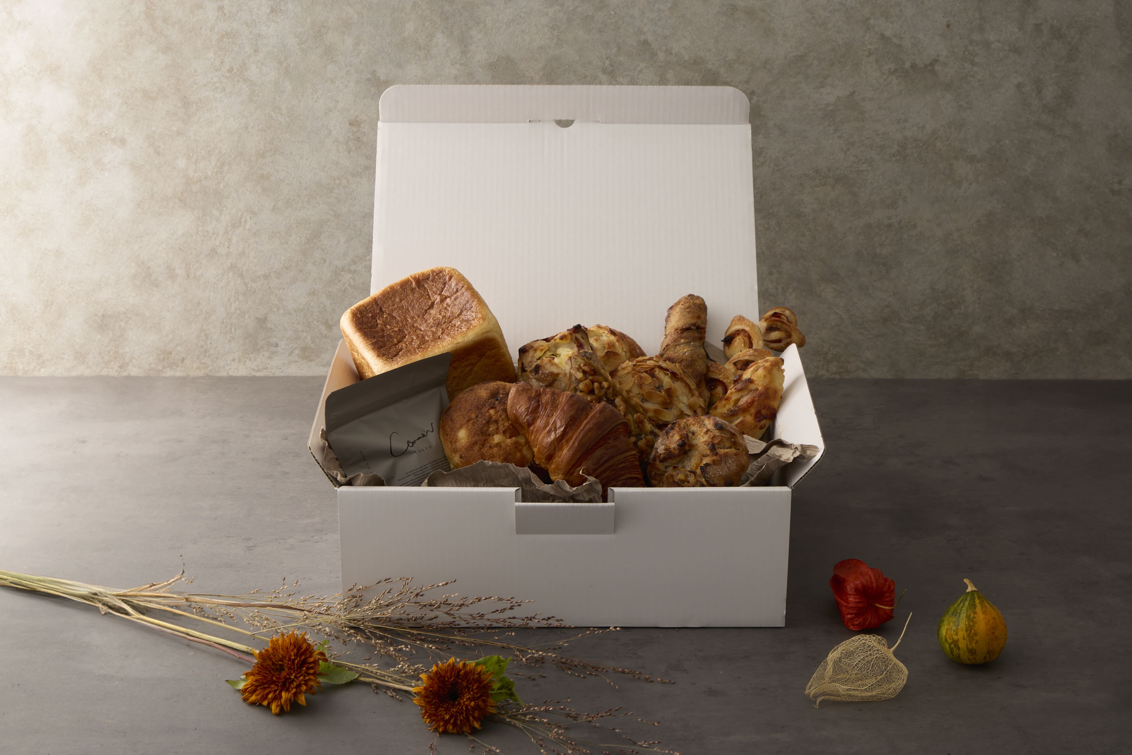 【Comme'N TOKYO】 パンギフト|秋の収穫祭¥5,000 (税込価格 ¥5,400 )実りの季節にぴったり、甘いも塩気も楽しめる全10種のパン詰め合わせ。食卓の定番「パン・ド・ミ」「クロワッサン」に、香ばしいナッツの「ノア・マロエ」「ゴルゴン・ノア」、食べ応えのある「ウインナー」「じゃがいもとチーズ」「さつまいもと大豆バターのリュスティック」。フルーツの酸味と甘みが広がる「クリームチーズのクランレザン」「アプリコットオランジュ」、香り高い「シナモンロール」まで、秋らしいコクと香りを詰め込みました。さらに月替わりのプティトゥは、季節感たっぷりの**「おいものプティトゥ」。冷凍でお届けするため、好きなタイミングで焼きたての美味しさをお楽しみいただけます。贈り物にもご自宅用にもどうぞ。【ラインナップ】▪パン・ド・ミ小麦の甘さが楽しめる、Comme’Nの看板商品です。 余計なものは入れずに丁寧にひとつひとつ焼き上げたシンプルなパンです。 ▪クロワッサンフランス大会と同じ製法で丁寧に焼き上げた自慢のクロワッサンです。 大会の練習で何度も何度も試作を重ねてたどり着いた、外はパリッと中はもっちりした食感と発酵バターの味わいをぜひ一度お試しください。▪ノア・マロエ栗とクリームチーズ、カスタードクリームを使った商品にアーモンドクリームとミルクチョコ、くるみをたっぷり使いました。▪クリームチーズのクランレザンバゲットの生地に、クランベリーやレーズンをたっぷり練り込んだ商品で中にクリームチーズを包んでいます。▪さつまいもと大豆バターのリュスティック手ごねのもちもち生地にさつまいもと大豆バターを練り込んだ商品です。 ひと口噛むと大豆バターのジュワッとした食感とさつまいもの甘さがたまりません!▪じゃがいもとチーズもちもちなジャガイモを練り込んだ生地に、チーズを一緒に入れて焼き上げました。 上のフランス産粗塩がいいアクセントになり、高崎時代からの看板商品です。▪アプリコットオランジュライ麦生地にアプリコットとオレンジ、ホワイトチョコを練り込みました。 ライ麦の香ばしさと、フルーツやチョコレートの甘さが新感覚で常連さんがよく買ってくださる商品の1つです。▪ウインナー人気のジャガイモとチーズの生地に、ウインナーとチーズを入れて焼き上げました。▪シナモンロール ブリオッシュの生地にレーズンを入れて、自家製シナモンあんをぐるぐる巻いた OPEN当初から人気のひと品です。▪ゴルゴンノア自家製酵母だけで焼き上げたカンパーニュ生地に、ゴルゴンゾーラとくるみを練り込んだハード商品です。▪おいものプティトゥ「いつもの日々に、秋のごほうびを。」 ほっくりとしたさつまいもの甘みと、ごまの香ばしさ。 そこに重ねた甘じょっぱさが、心地よい余韻を残します。 【アレルギー品目(8品目)】小麦/乳/卵/くるみ※パンのセットのため、パンごとに使用しているアレルギー品目が異なります。アレルギーをお持ちの方で、詳しいアレルギー情報をお知りになりたい方は、online@commen.jp宛てにメールでご連絡ください【保存方法】冷凍庫(-18度以下)にて保存をお願いいたします。【賞味期限】冷凍・未開封で1カ月 / 解凍後1日なるべくお早めにお召し上がりください。 【お召し上がり方】オーブンに合わせて冷凍のままか、自然解凍後、お好みの焼き加減でお召し上がり下さい。 【配送方法】ヤマト運輸 / クール冷凍 ※別途送料がかかります。※複数セットご購入の場合、それぞれに送料がかかります。(複数セットをまとめて詰め合わせられませんので、各セット毎1箱でお届けいたします。)【お届けについて】ご注文から【4〜7日前後】で発送いたします。ご注文後の発送先住所の変更はお受けできませんので、ご注文前に必ず正しい住所をご入力ください。※地域によってお届け日数に相違がございますのでご了承ください。※祝日を挟む大型連休期間のご注文は、弊社の休業日の関係でお届けに遅れが生じる可能性がございますので、あらかじめご了承ください。【同梱品について】・金額を記載した納品書に関しては同梱しておりません。 ※注文内容の確認および領収書の発行につきましては、マイページよりご確認ください。※マイページ登録をされていない場合は、領収書の発行ができませんのでご注意ください。※本商品は特製ボックスでのお届けのため、他商品(3,000円の詰め合わせセット含む)との同時購入はできかねます。他商品をご希望の場合は、お会計完了後に再度のご購入をお願いいたします。※本商品は1回のお会計5個までのご購入が可能です。6個以上をご希望の場合は、お会計完了後に再度のご購入をお願いいたします。