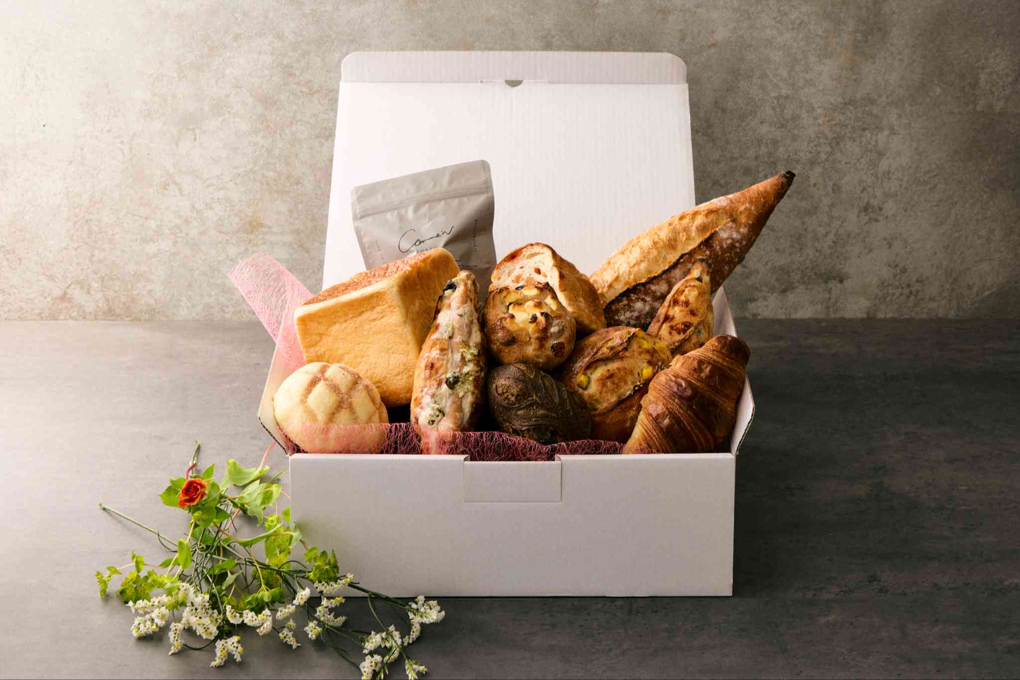 【Comme'N TOKYO】 パンギフト|別れと芽吹きのあいだに¥5,000 (税込価格 ¥5,400 )季節の移ろいに寄り添う、やさしさと力強さを一箱に。食卓の主役「パン・ド・ミ」、芳醇なバターが香る「クロワッサンA.O.P」、香り高い「バゲット・ア・ラ・マン」。和の余韻「ほうじ茶と黒豆」、クリーミーな酸味が心地よい「クリームチーズのクランレザン」、やさしい甘さの「にんじんブレッド」。ほっくり感が広がる「さつまいもと大豆バターのリュスティック」、食べ応えの「ホットドッグ」、コクのある「オリーブとチーズ」、おやつにうれしい「メロンパン」。仕上げは濃厚チョコのひと口菓子「ダブルチョコのプティトゥ」。甘いも塩気もバランスよく、春を迎える贈り物にも最適です。冷凍でお届けするため、好きなタイミングで“焼きたてのような”美味しさを。【ラインナップ】▪パン・ド・ミ小麦の甘さが楽しめる、Comme’Nの看板商品です。 余計なものは入れずに丁寧にひとつひとつ焼き上げたシンプルなパンです。型でじっくり焼いているので、次の日でもしっとり食べていただけます。▪クロワッサンA.O.PAOP認定された希少なバターをたっぷり織り込んだクロワッサンです。外はサクサク、中はしっとり食感で、一口頬張ると発酵バターの風味が広がります。食べる直前にトースターで軽く温め直すとより食感と風味を楽しめるので、ぜひお試しください。▪バゲット・ア・ラ・マンア・ラ・マンは手ごねという意味で、外はしっかり中はもちもちの太めのバゲットです。フランス産の小麦と三重県産の小麦で仕込んでいる粉の甘さが楽しめます。▪ほうじ茶と黒豆濃いほうじ茶と甘く煮た黒豆をふんだんに使い、前日発酵で焼き上げました。 もっちりとしたほうじ茶と黒豆は、抹茶とホワイトチョコとセットで買われることがかなり多い商品です。 ぜひどちらもご賞味ください!▪クリームチーズのクランレザンバゲットの生地に、クランベリーやレーズンをたっぷり練り込んだ商品で中にクリームチーズを包んでいます。 可愛らしい大きさなので、あともうひとつ!という商品選びに困った時はぜひ選んでみてください。▪にんじんブレッド自家製でにんじんとローリエを一緒に煮込み、オレンジと合わせてしっとり焼き上げました。 にんじん嫌いなお子様もなぜか食べられるひと品です。 優しい味わいはお子様から大人までどなたでも虜にします。▪さつまいもと大豆バターのリュスティック手ごねのもちもち生地にさつまいもと大豆バターを練り込んだ商品です。 ひと口噛むと大豆バターのジュワッとした食感とさつまいもの甘さがたまりません! 素朴で飽きのこない味なのでスタッフ人気もかなり高い商品のひとつです。▪ホットドッグ人気のオリーブとチーズの生地にウインナーやピクルス、ホワイトソースや玉ねぎペーストを挟んで焼き上げています。 あつあつに焼き直すとより美味しく食べていただけるのでおすすめです!▪オリーブとチーズソフトフランスの生地にブラックオリーブとグリーンオリーブを混ぜ込んだ商品です。 上にパルメザンチーズをふりかけて香ばしく焼き上げました。 歯切れ良く食べられる商品です。▪瀬戸内レモンと鳴門金時のブリオッシュブリオッシュの生地にレモンとさつまいもを練り込ませ、焼き上げました。 紅茶も一緒に生地に入れているので、口に含んだ時の香りを楽しんでください。▪メロンパン昔ながらの懐かしい味わいをComme’N風に仕上げました。口溶けのいいブリオッシュとサクサクなクッキー生地が楽しめるシンプルなおやつパンです。▪ダブルチョコのプティトゥ2種類のチョコレートが入った贅沢なプティトゥ。焦がしバターをたっぷり染み込ませているので中までしっとりしています。チョコ好きにはたまらない一品です。【アレルギー品目(8品目)】小麦/乳/卵※パンのセットのため、パンごとに使用しているアレルギー品目が異なります。アレルギーをお持ちの方で、詳しいアレルギー情報をお知りになりたい方は、online@commen.jp宛てにメールでご連絡ください【保存方法】冷凍庫(-18度以下)にて保存をお願いいたします。【賞味期限】冷凍・未開封で1カ月 / 解凍後1日なるべくお早めにお召し上がりください。 【お召し上がり方】冷凍のまま、お好みの焼き加減でお召し上がり下さい。 【配送方法】ヤマト運輸 / クール冷凍※別途送料がかかります。※複数セットご購入の場合、それぞれに送料がかかります。(複数セットをまとめて詰め合わせられませんので、各セット毎1箱でお届けいたします。) 【お届けについて】ご注文から【4〜7日前後】で発送いたします。ご注文後の発送先住所の変更はお受けできませんので、ご注文前に必ず正しい住所をご入力ください。※地域によってお届け日数に相違がございますのでご了承ください。※祝日を挟む大型連休期間のご注文は、弊社の休業日の関係でお届けに遅れが生じる可能性がございますので、あらかじめ